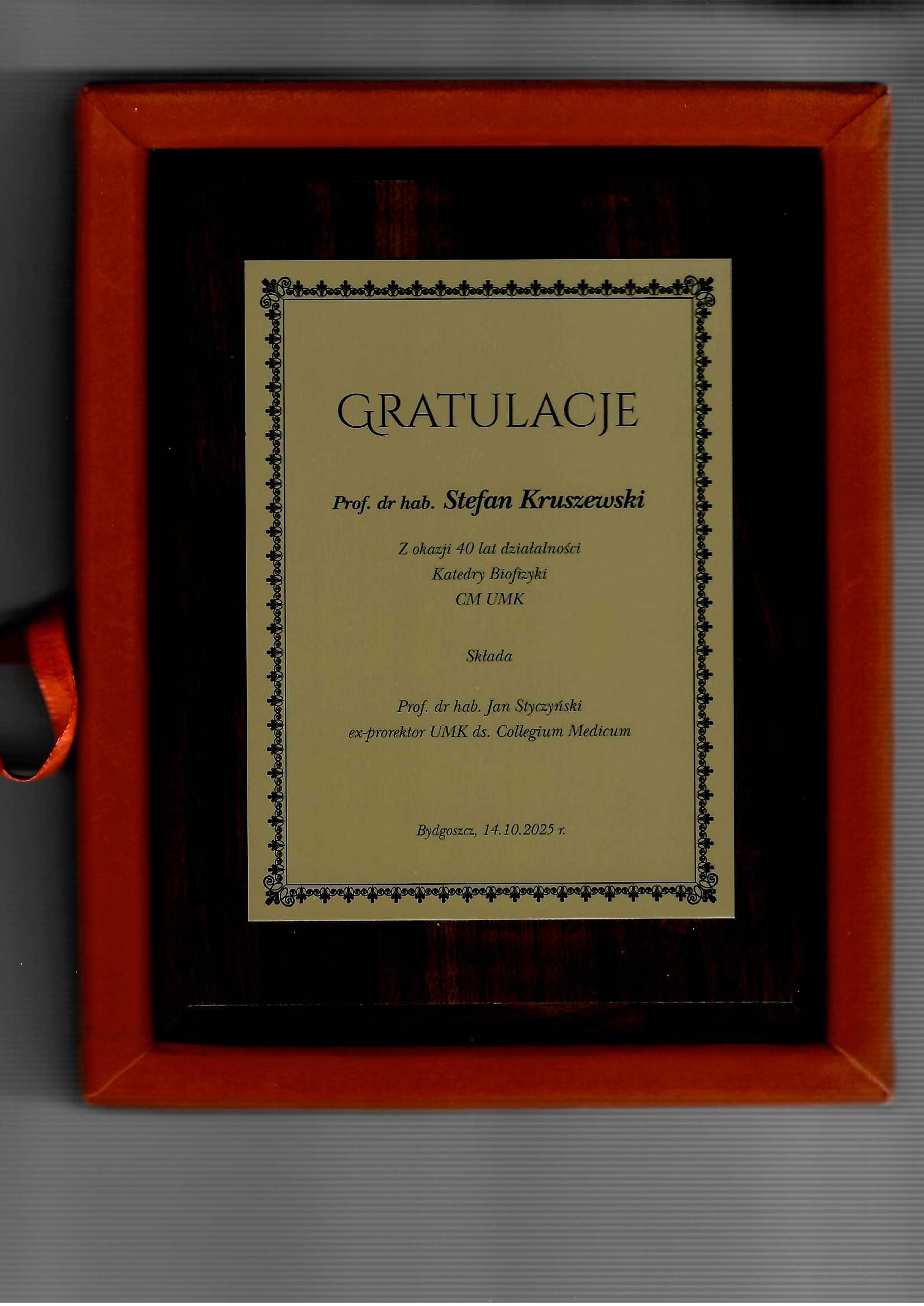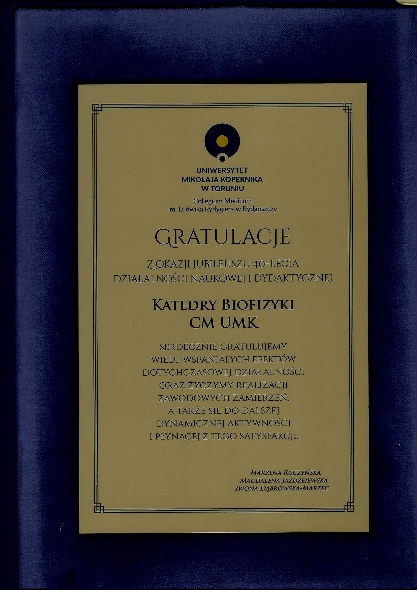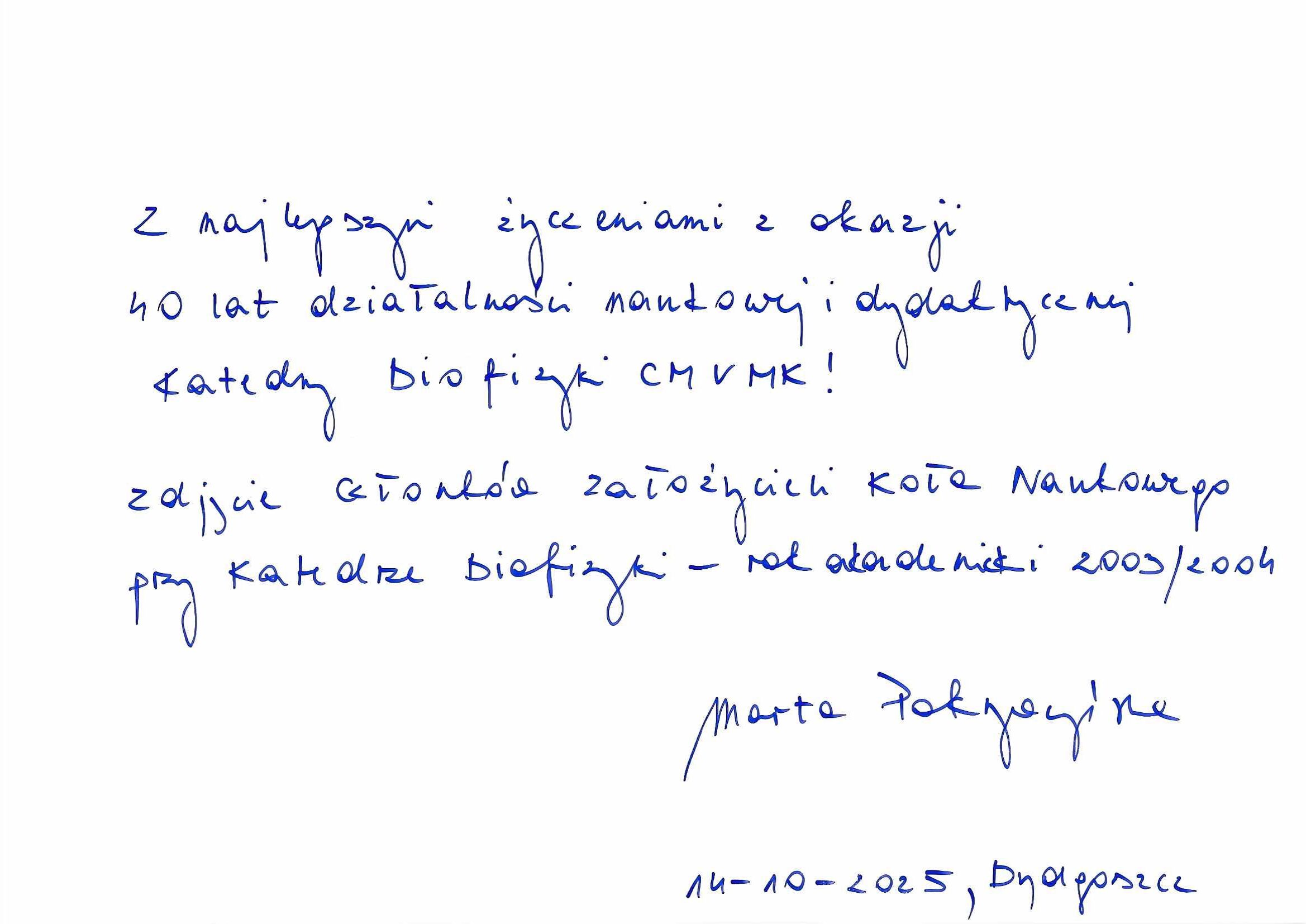 Listy gratulacyjne – 40 lecie Biofizyki