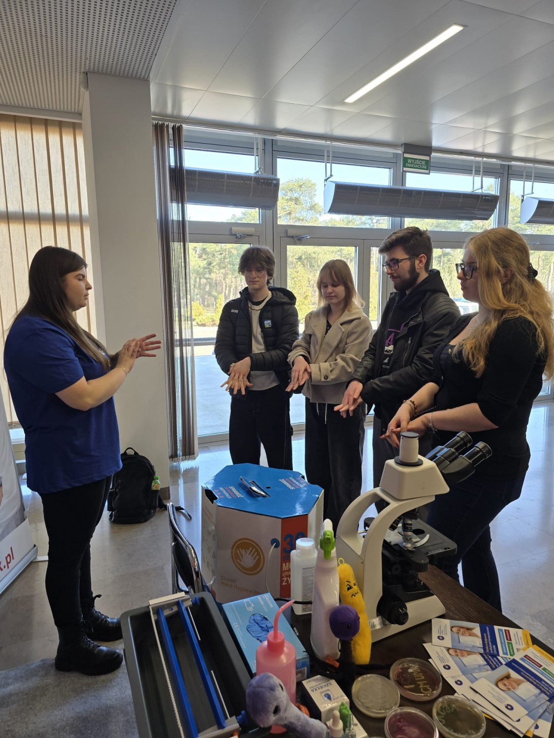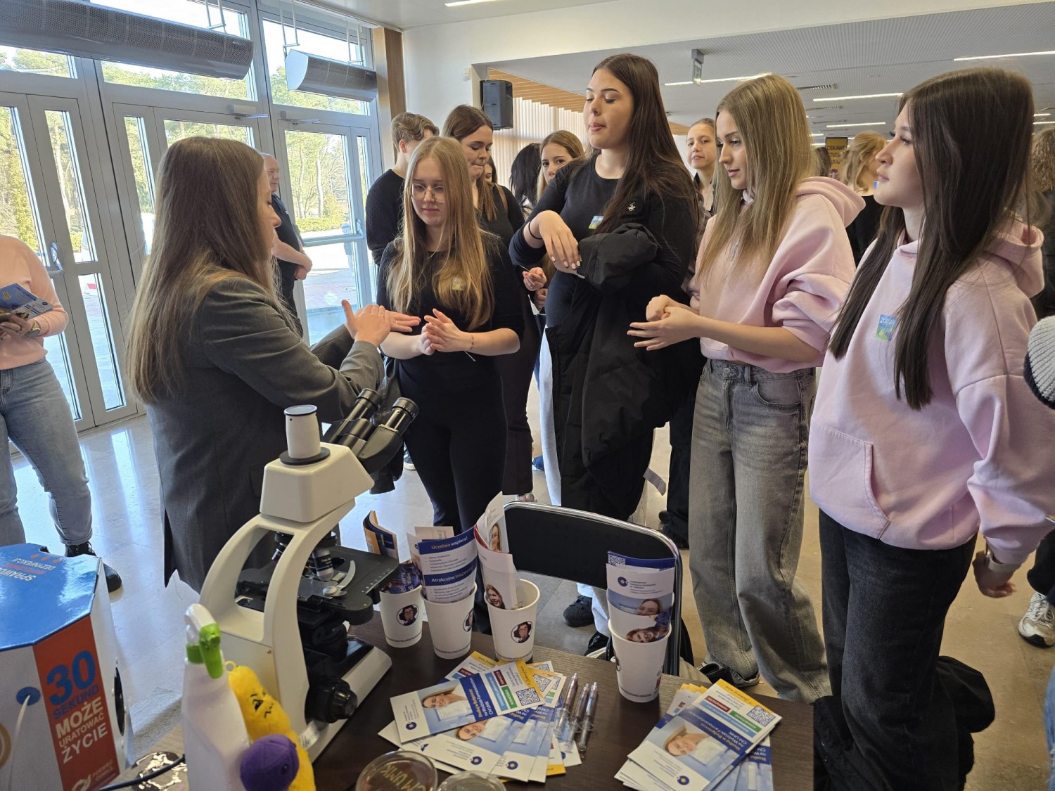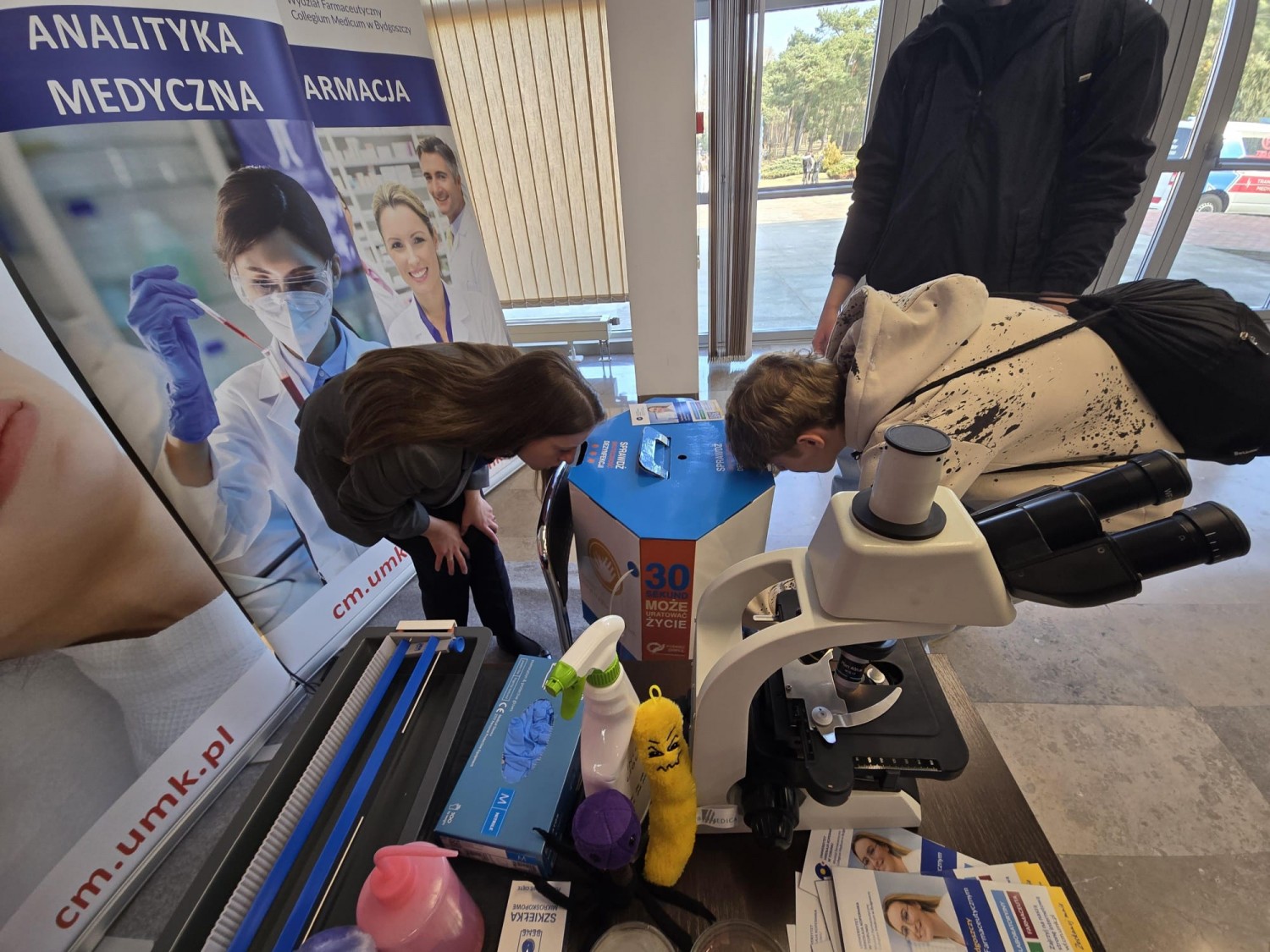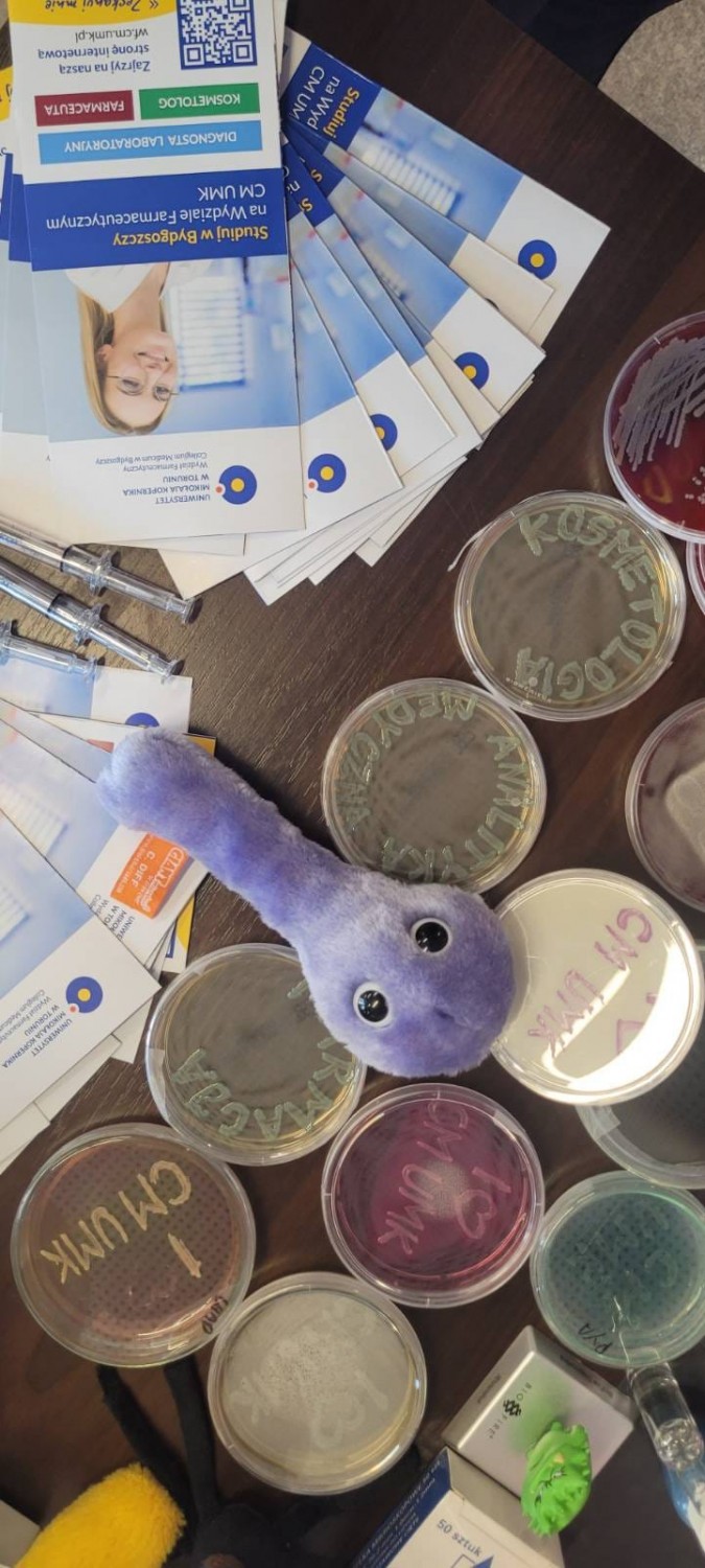 Odwiedzający mogli uzyskać wyczerpujące informacje na temat oferty dydaktycznej, przebiegu studiów oraz wymagań rekrutacyjnych na kierunkach: analityka medyczna, farmacja i kosmetologia, realizowanych na Wydziale Farmaceutycznym CM UMK. Nie zabrakło również elementów praktycznych. Uczestnicy poznawali podstawy mikroskopowania i hodowli drobnoustrojów, a także uczyli się rozpoznawania morfologii komórek oraz kolonii bakterii i grzybów. Dużym zainteresowaniem cieszyła się możliwość sprawdzenia skuteczności dezynfekcji dłoni z wykorzystaniem szkoleniowej lampy UV, służącej do nauki prawidłowej techniki higieny rąk.