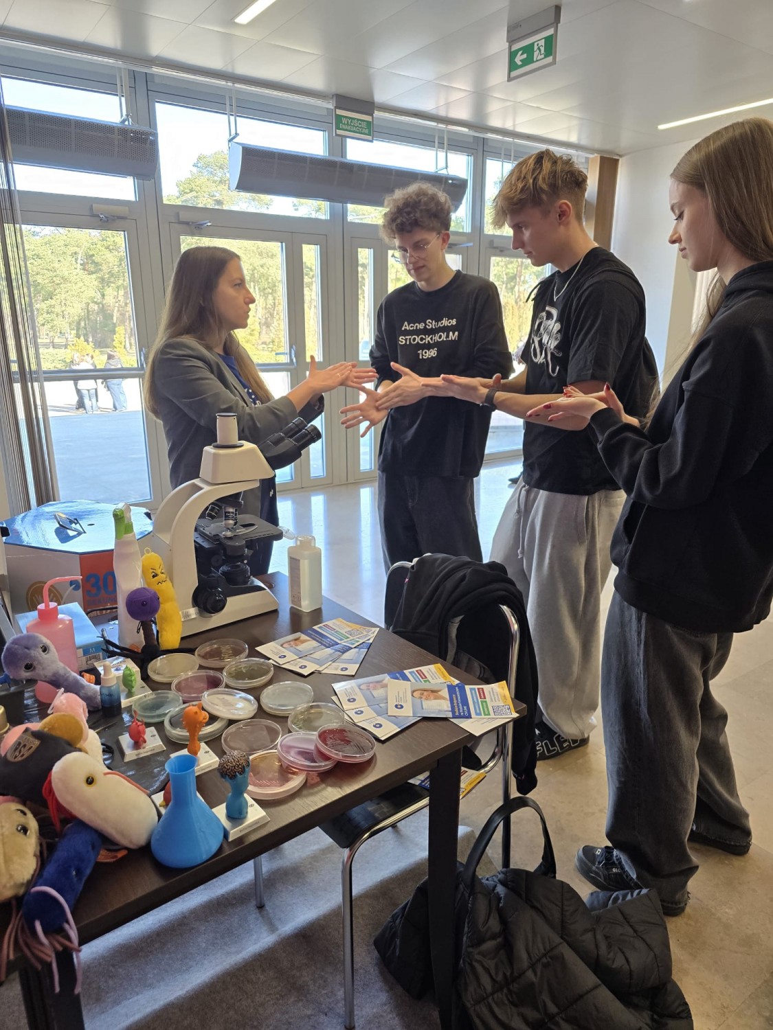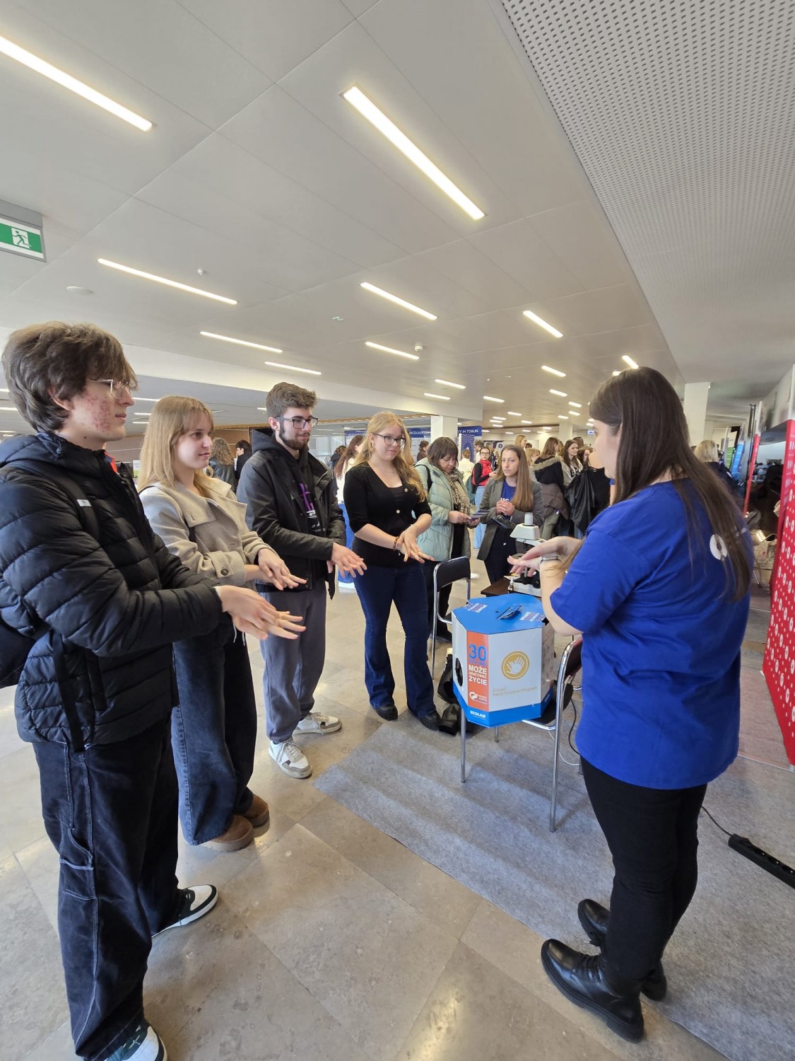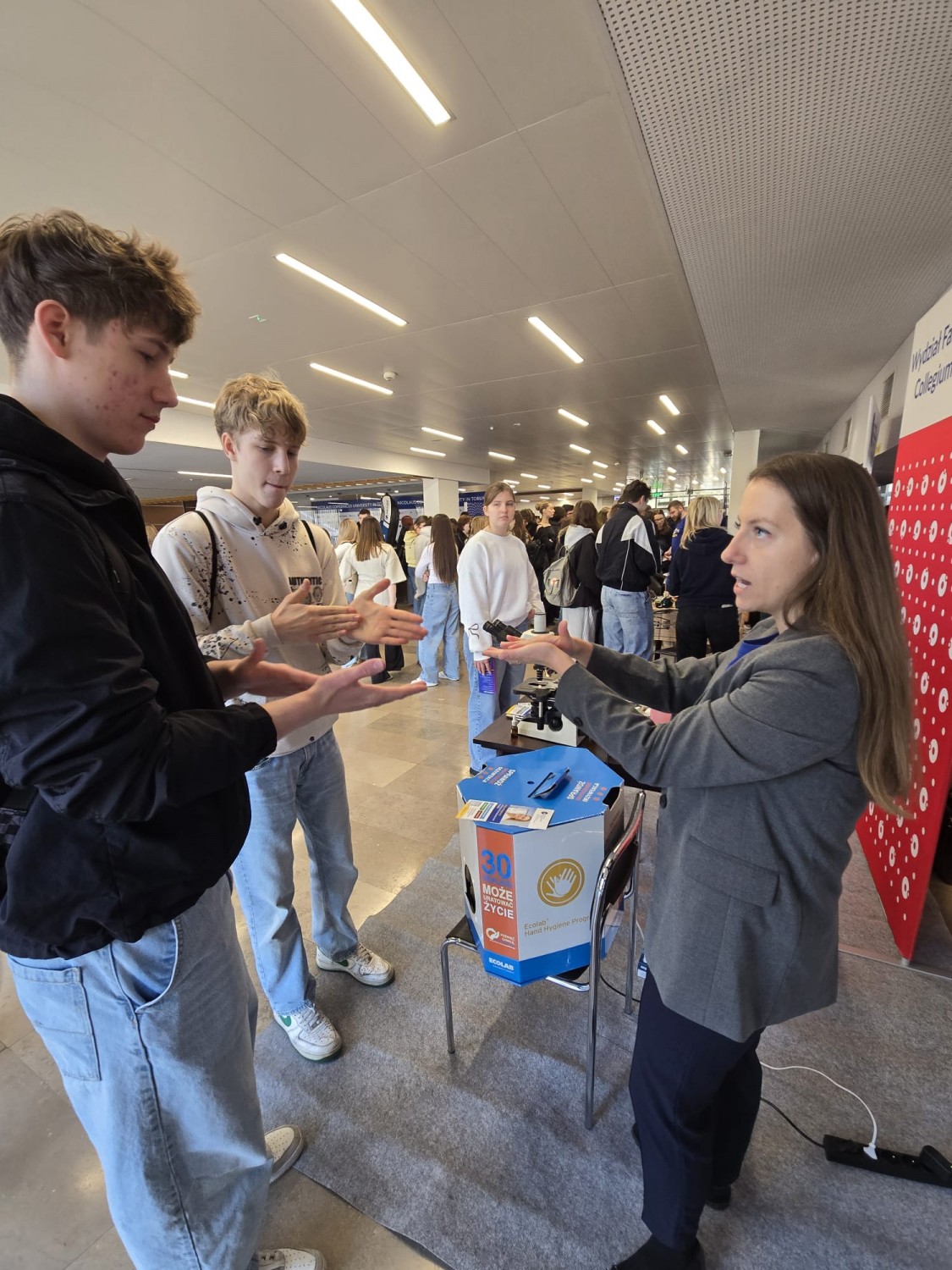 Odwiedzający mogli uzyskać wyczerpujące informacje na temat oferty dydaktycznej, przebiegu studiów oraz wymagań rekrutacyjnych na kierunkach: analityka medyczna, farmacja i kosmetologia, realizowanych na Wydziale Farmaceutycznym CM UMK. Nie zabrakło również elementów praktycznych. Uczestnicy poznawali podstawy mikroskopowania i hodowli drobnoustrojów, a także uczyli się rozpoznawania morfologii komórek oraz kolonii bakterii i grzybów. Dużym zainteresowaniem cieszyła się możliwość sprawdzenia skuteczności dezynfekcji dłoni z wykorzystaniem szkoleniowej lampy UV, służącej do nauki prawidłowej techniki higieny rąk.
