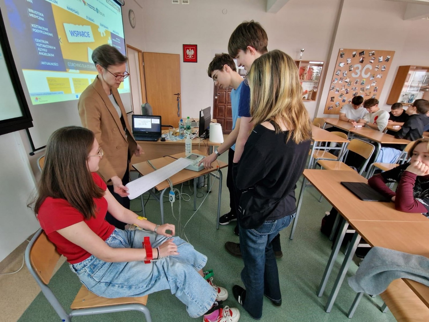 Zajęciom towarzyszyły prezentacje zjawisk fizycznych. Uczniowie mieli też możliwość samodzielnej rejestracji EKG oraz przeprowadzenia na modelowym układzie prostego zabiegu kosmetologicznego. Zajęcia cieszyły się dużym zainteresowaniem uczniów.