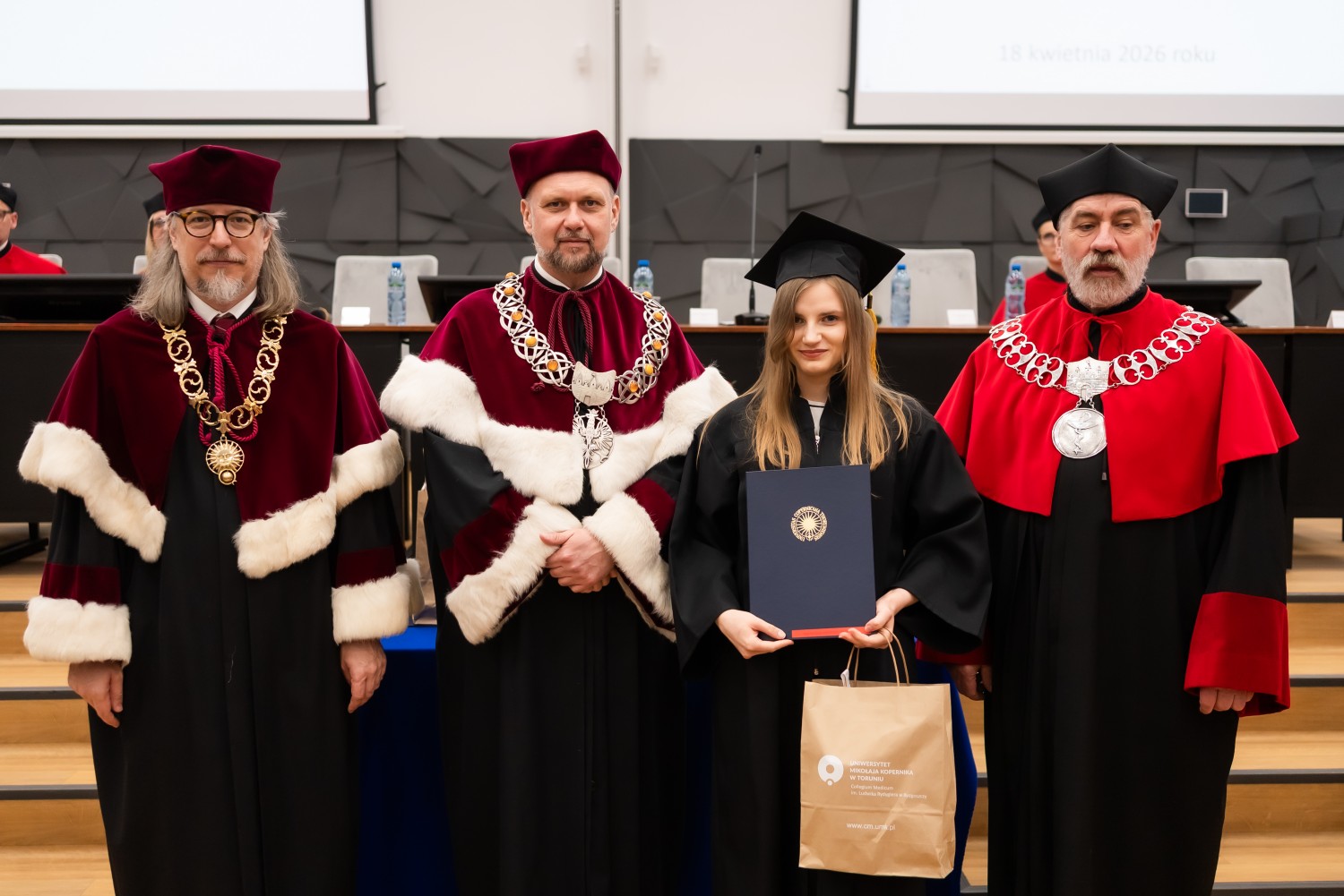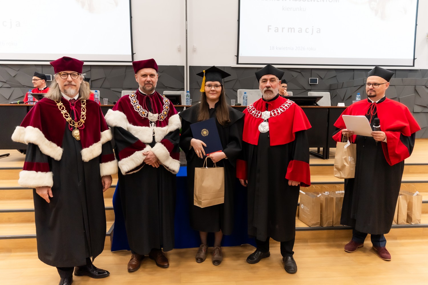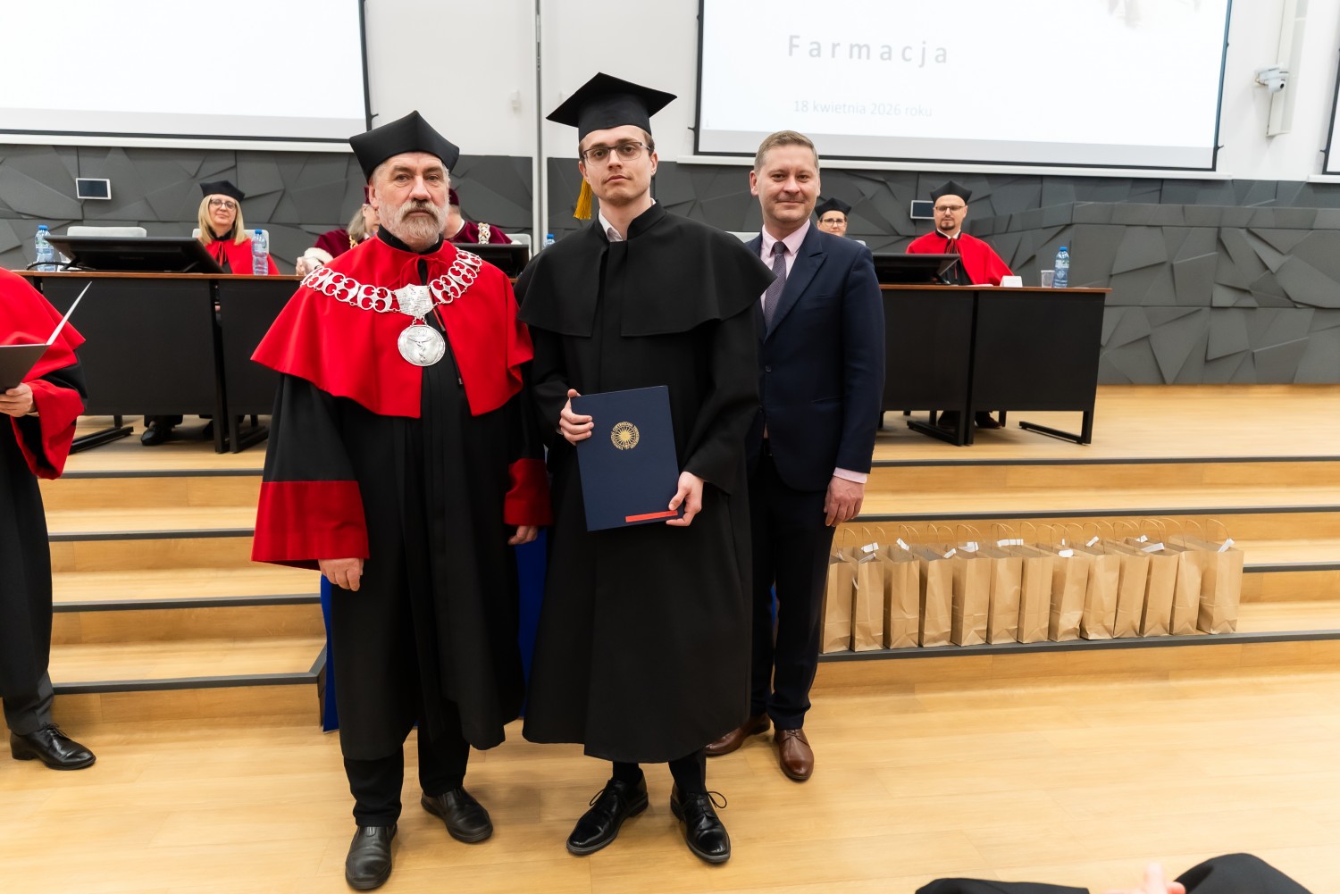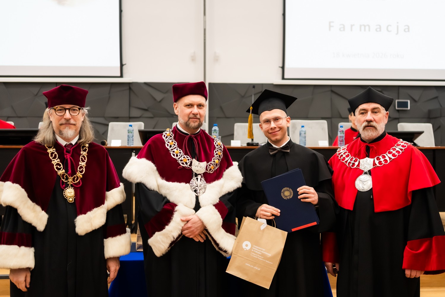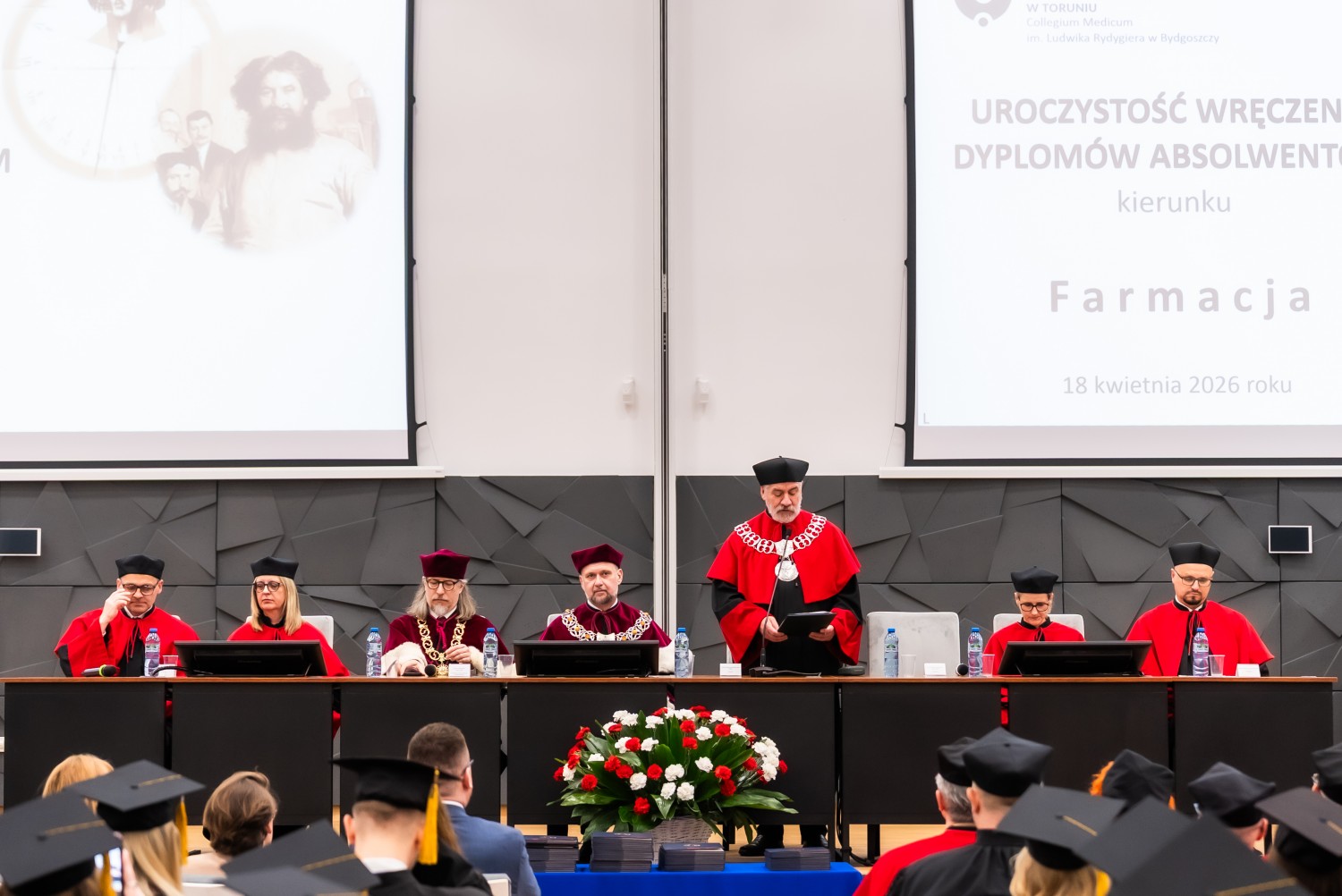 18 kwietnia 2026 r. na Wydziale Farmaceutycznym Collegium Medicum UMK odbyło się dyplomatorium kierunku farmacja. Podczas uroczystości 63 absolwentów odebrało dyplomy magistra farmacji.