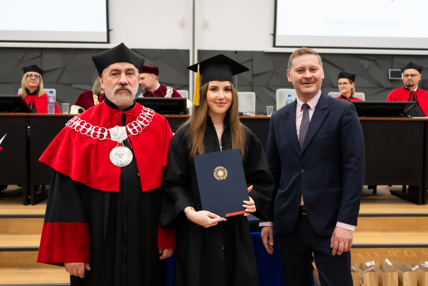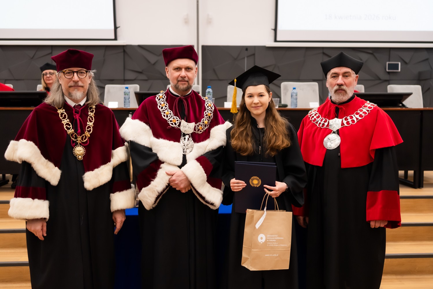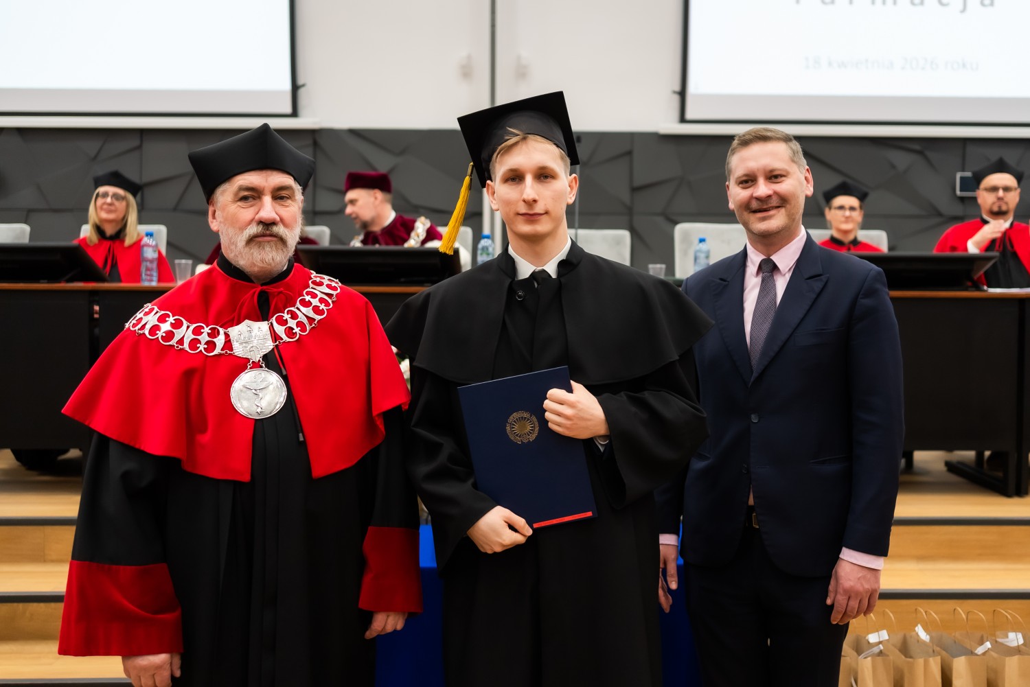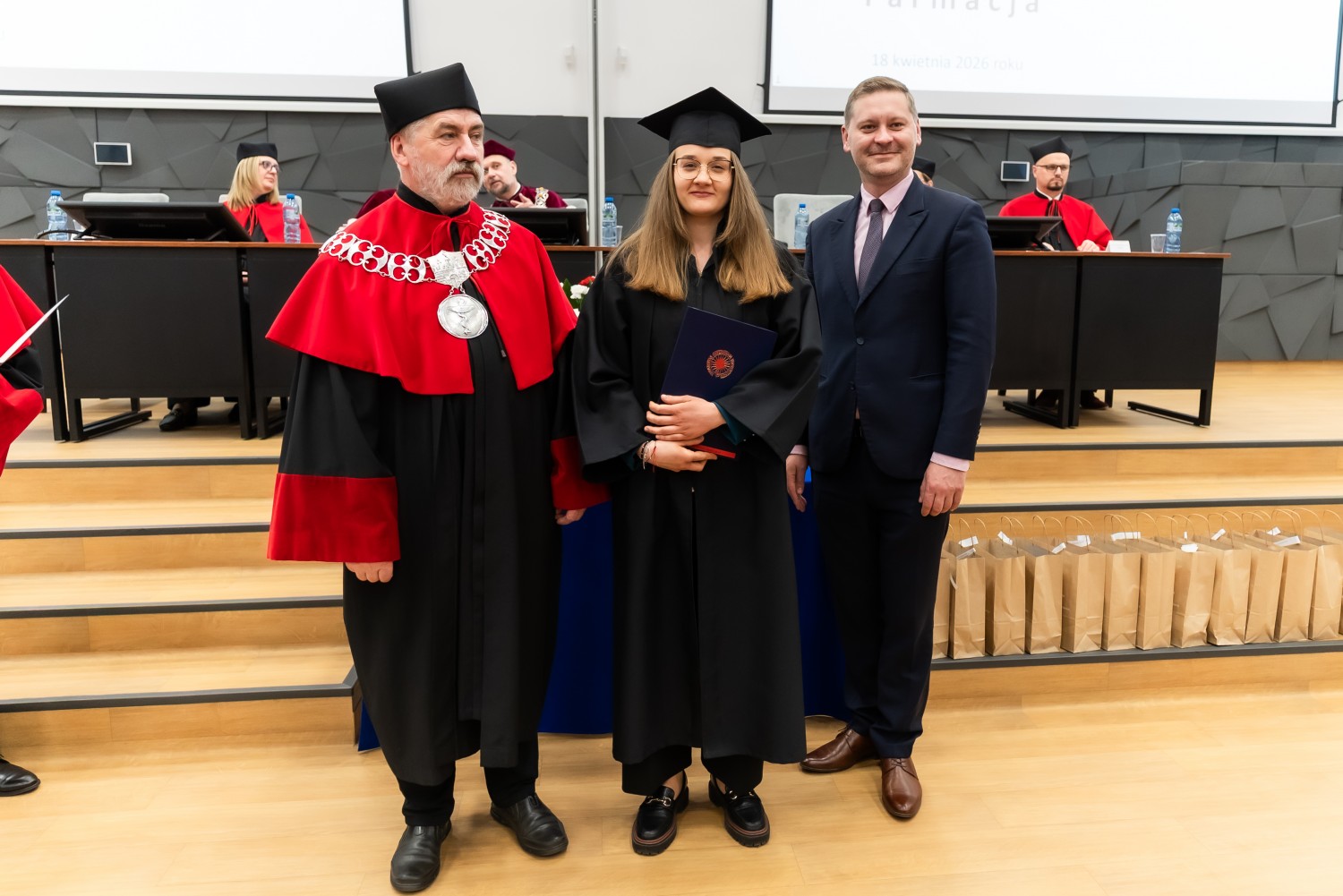 18 kwietnia 2026 r. na Wydziale Farmaceutycznym Collegium Medicum UMK odbyło się dyplomatorium kierunku farmacja. Podczas uroczystości 63 absolwentów odebrało dyplomy magistra farmacji.