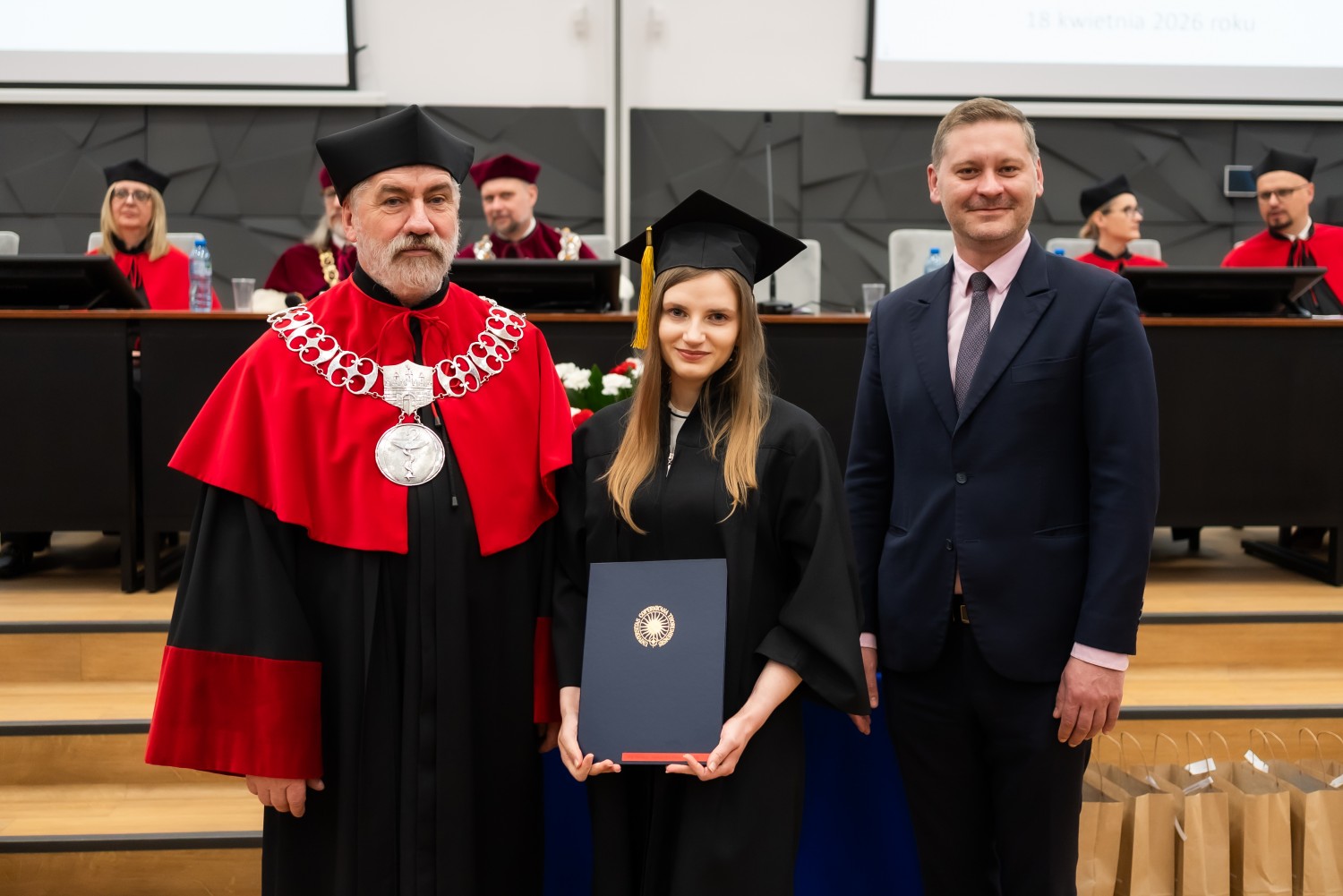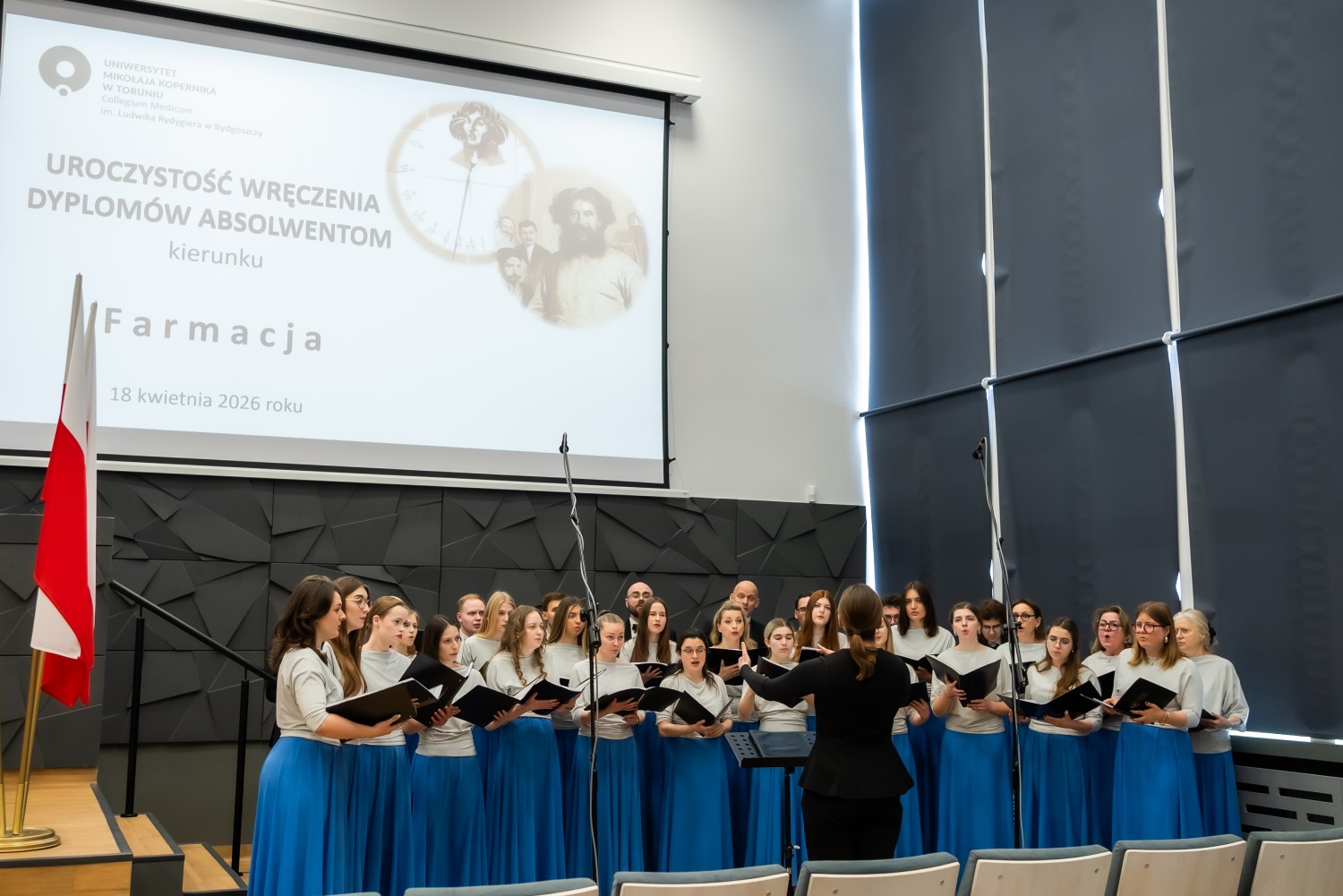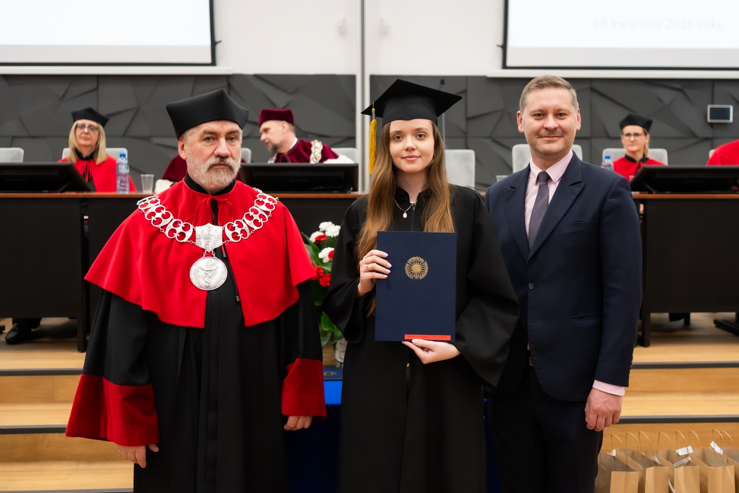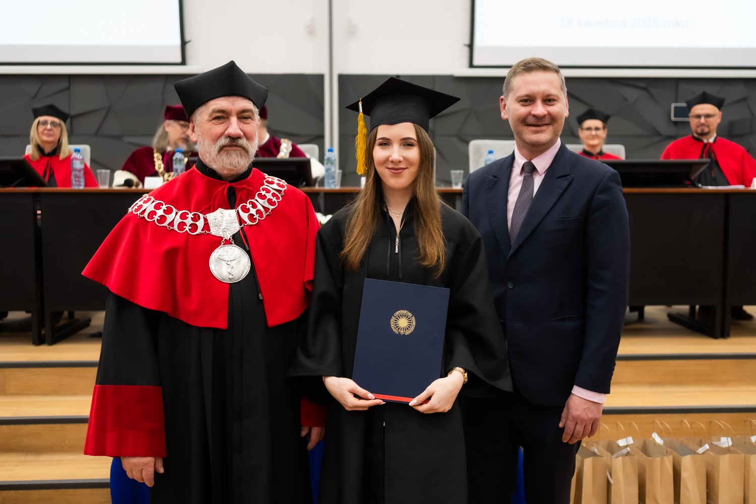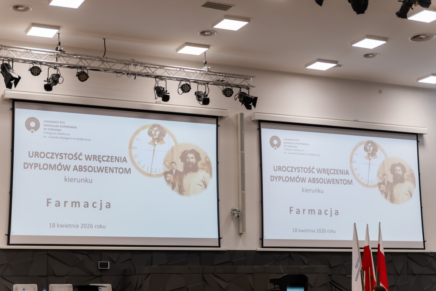 18 kwietnia 2026 r. na Wydziale Farmaceutycznym Collegium Medicum UMK odbyło się dyplomatorium kierunku farmacja. Podczas uroczystości 63 absolwentów odebrało dyplomy magistra farmacji.