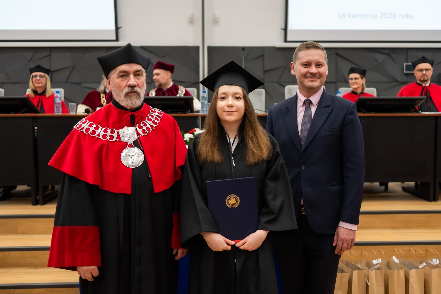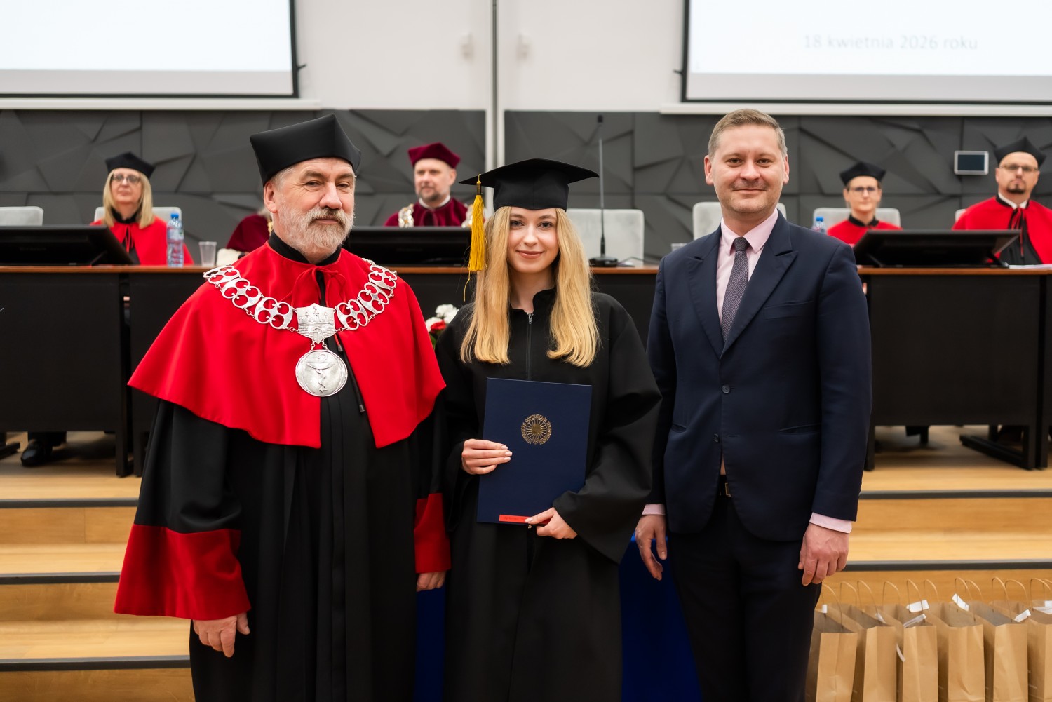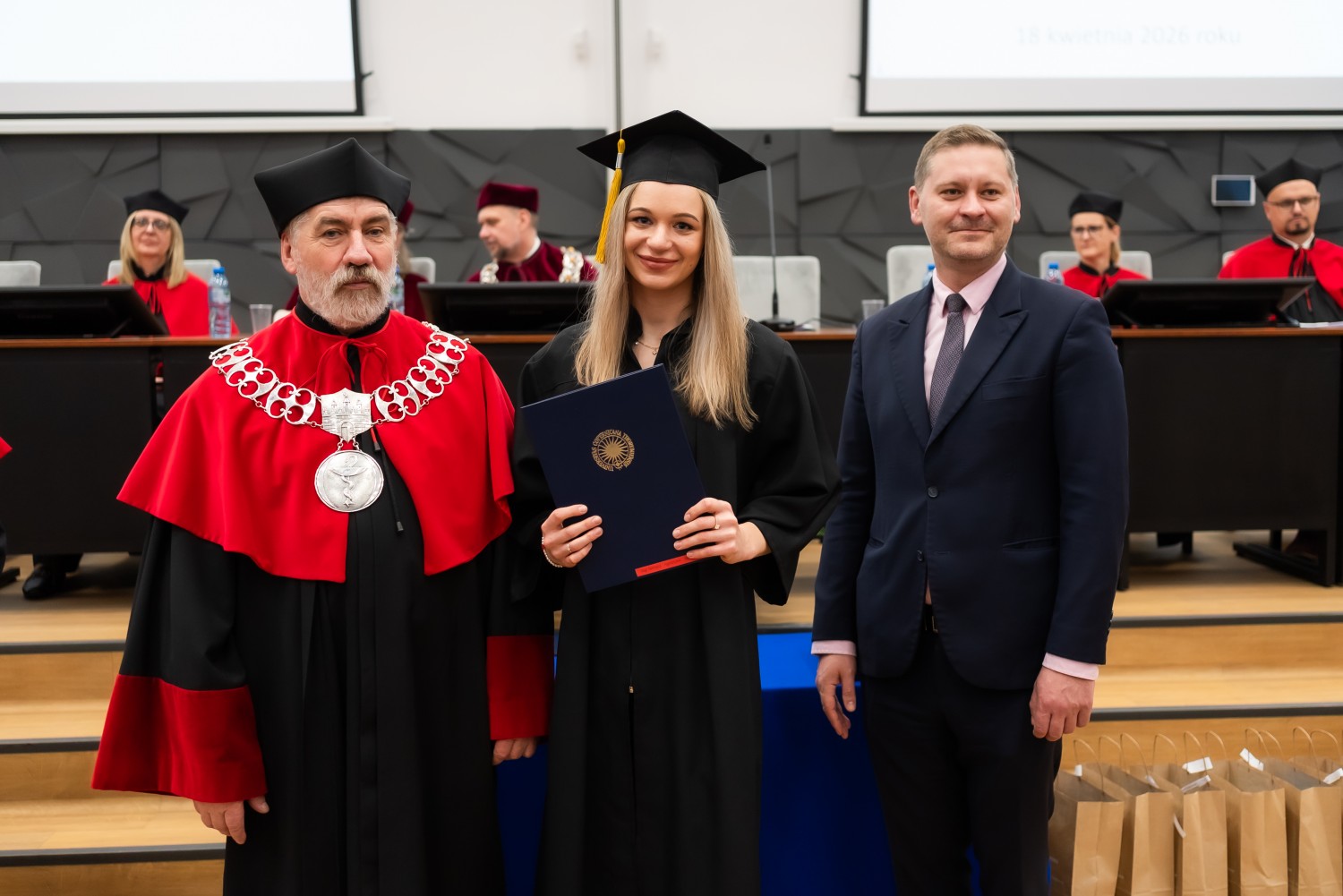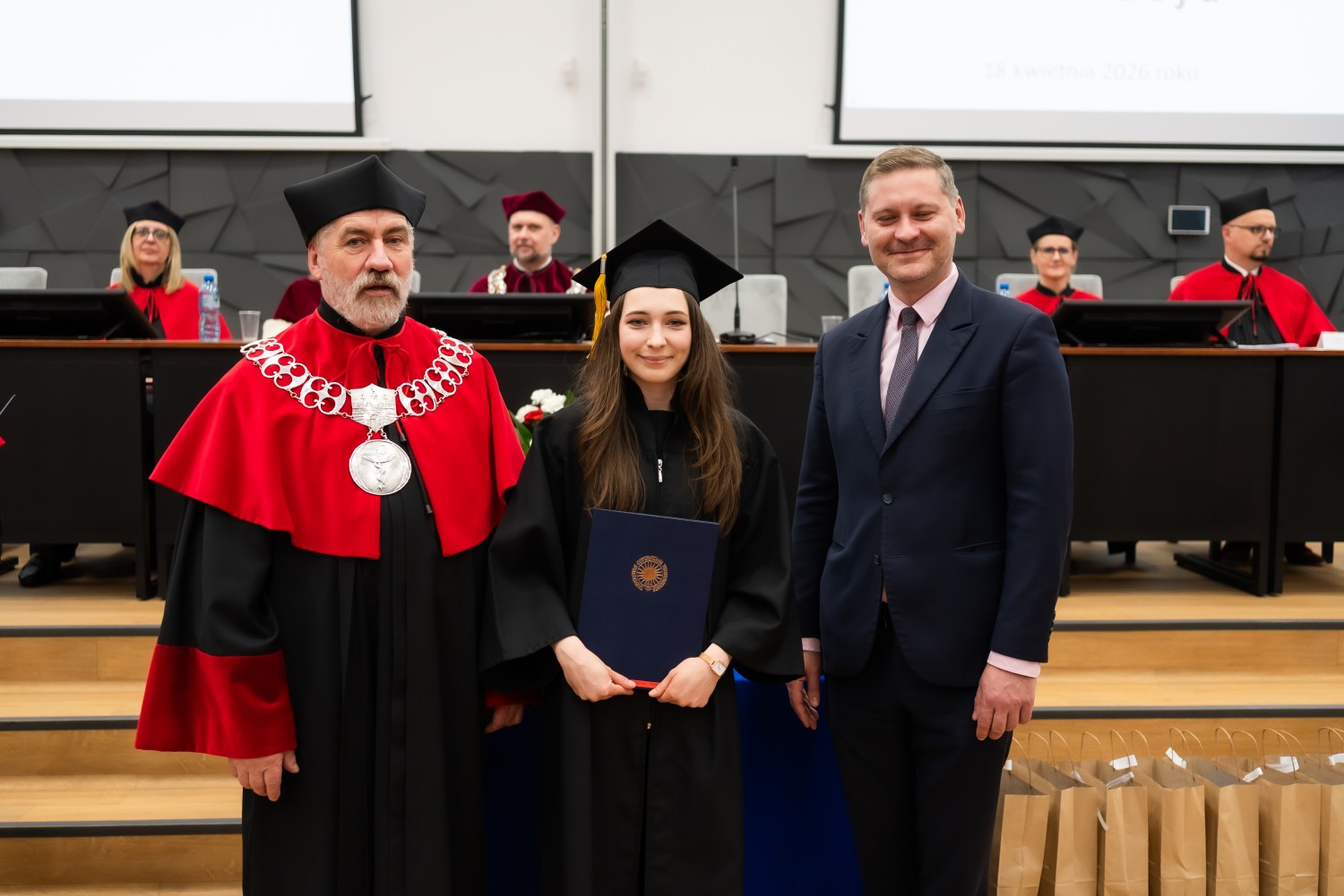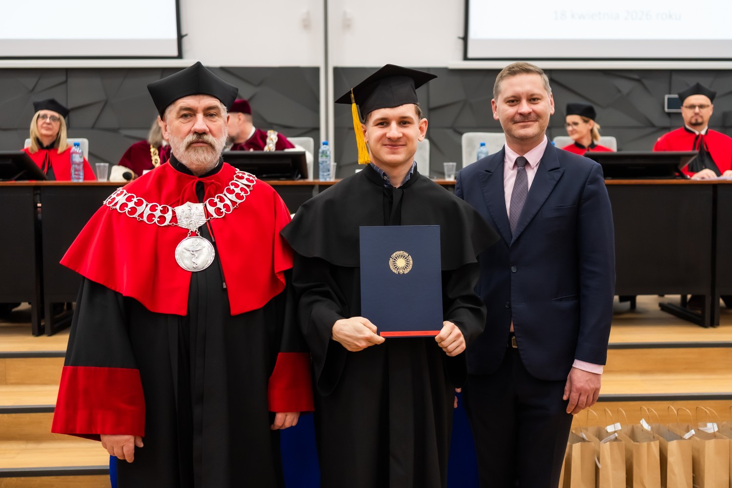 18 kwietnia 2026 r. na Wydziale Farmaceutycznym Collegium Medicum UMK odbyło się dyplomatorium kierunku farmacja. Podczas uroczystości 63 absolwentów odebrało dyplomy magistra farmacji.
