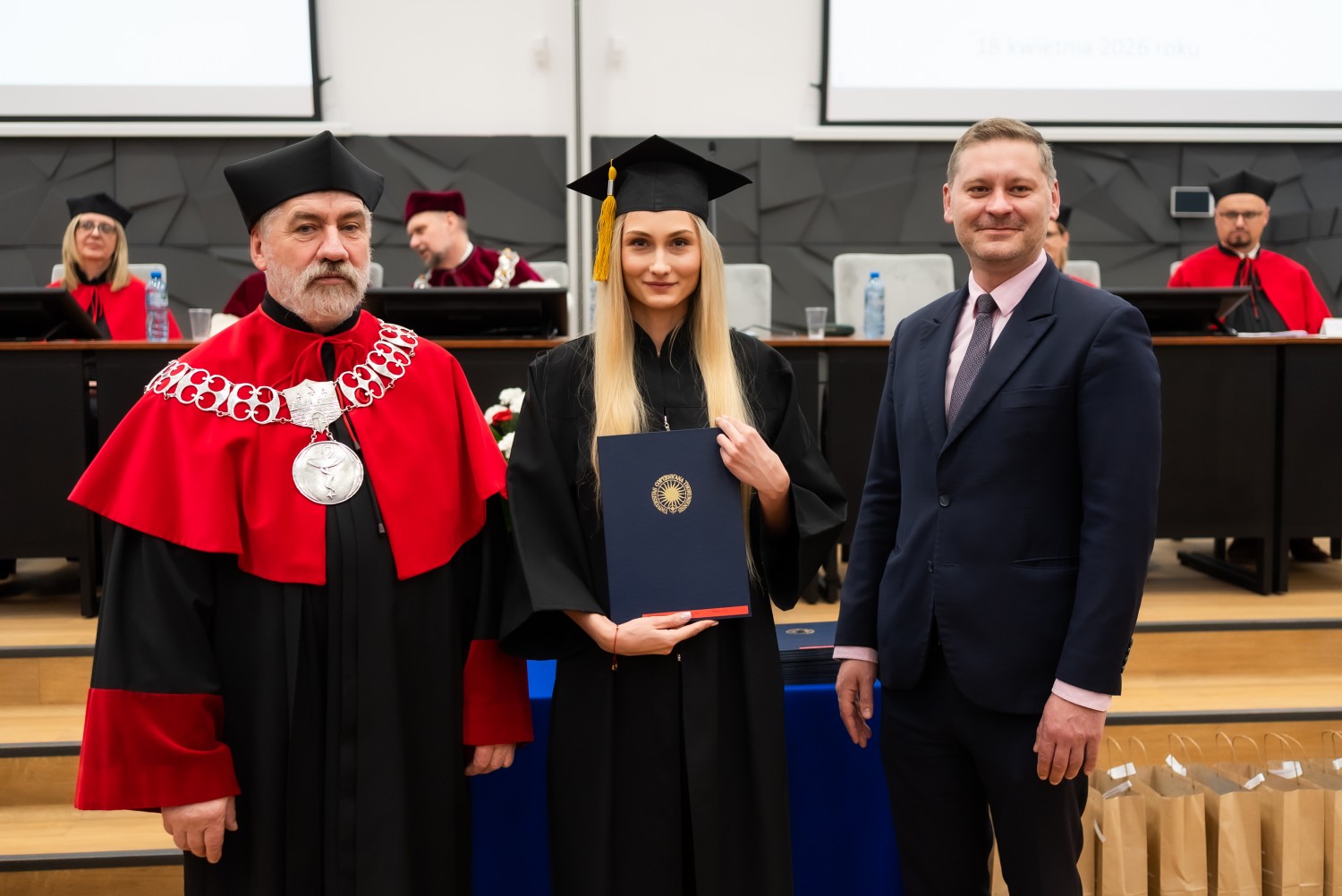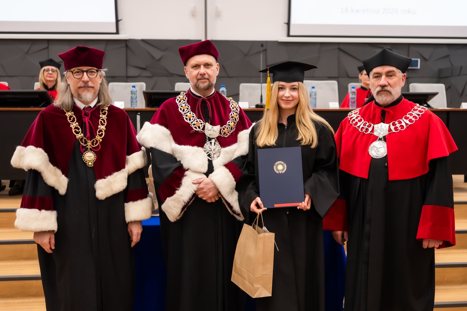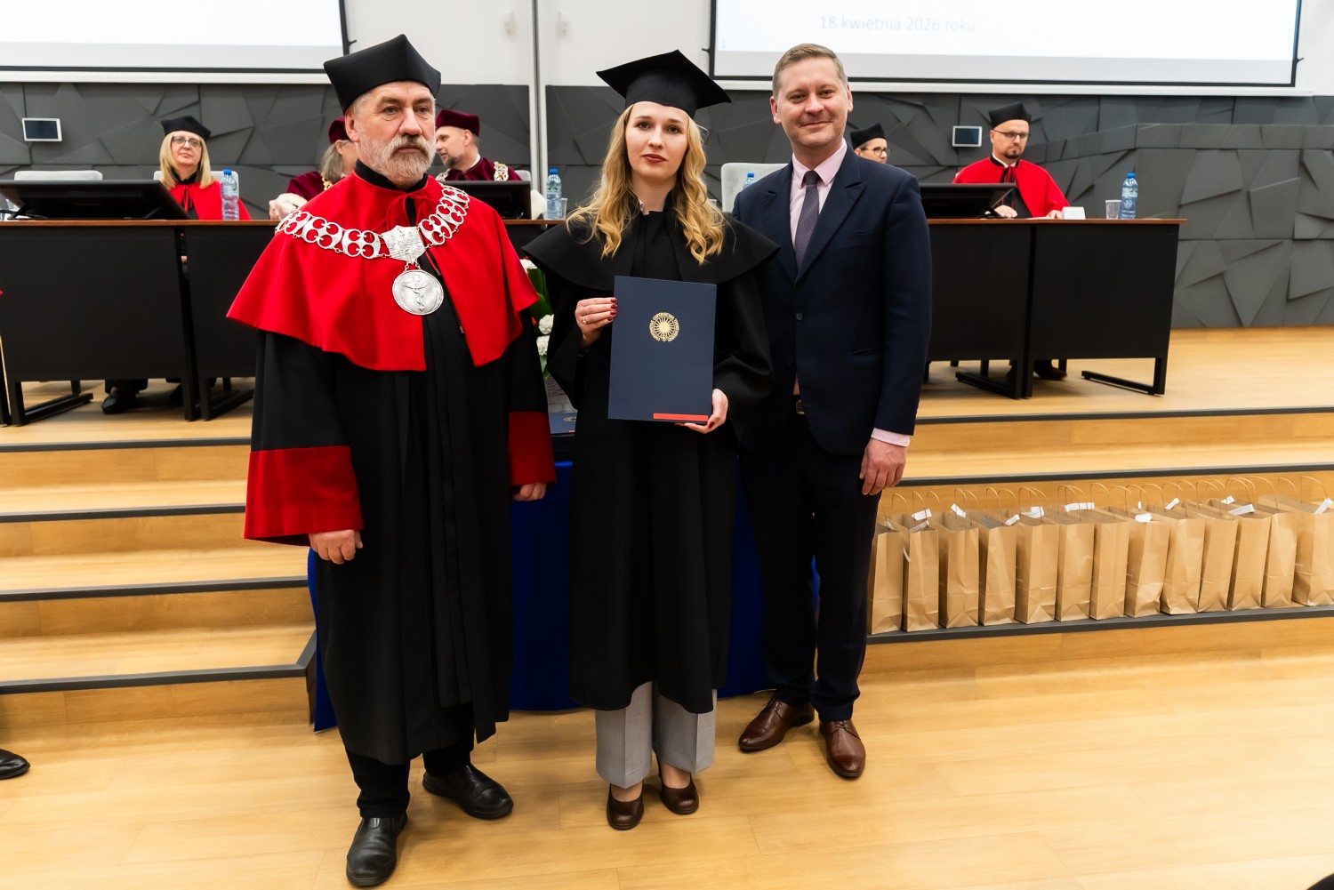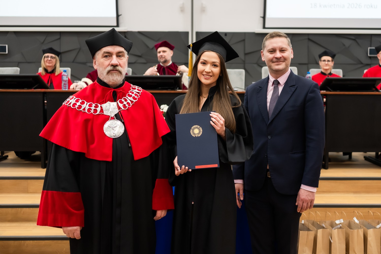 18 kwietnia 2026 r. na Wydziale Farmaceutycznym Collegium Medicum UMK odbyło się dyplomatorium kierunku farmacja. Podczas uroczystości 63 absolwentów odebrało dyplomy magistra farmacji.