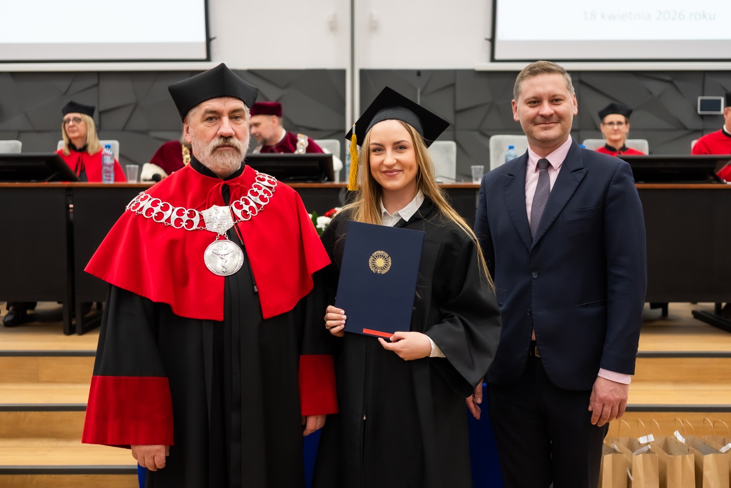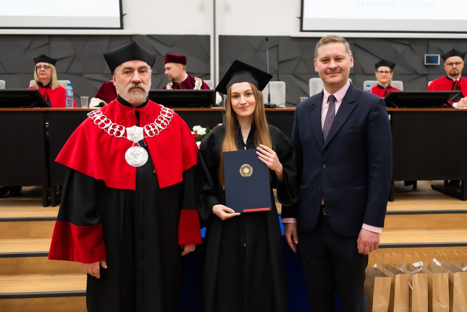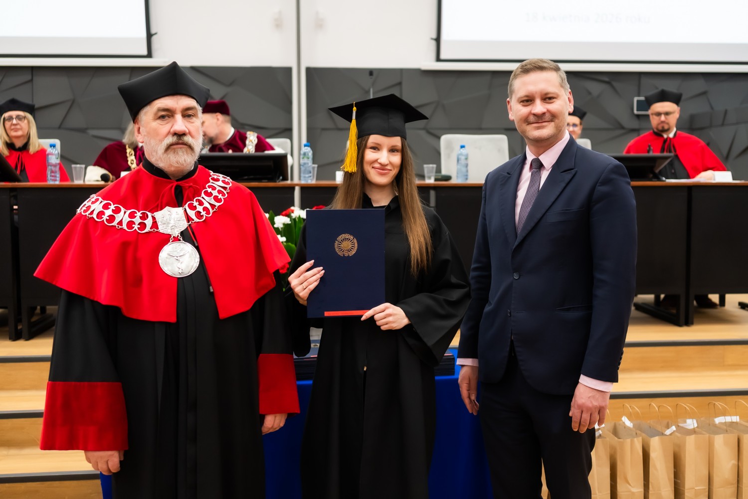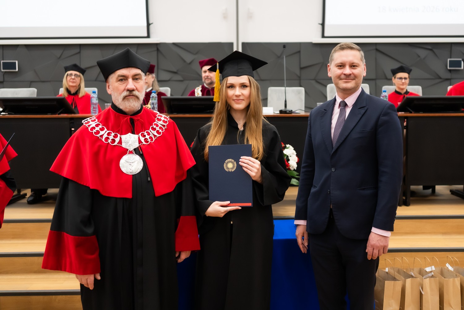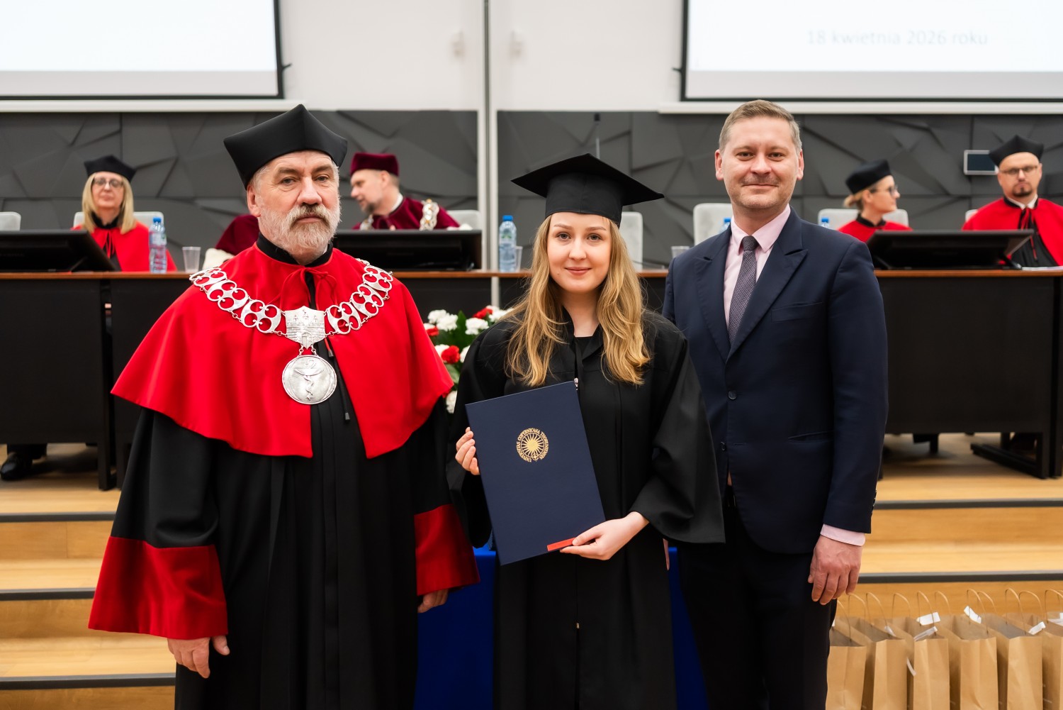 18 kwietnia 2026 r. na Wydziale Farmaceutycznym Collegium Medicum UMK odbyło się dyplomatorium kierunku farmacja. Podczas uroczystości 63 absolwentów odebrało dyplomy magistra farmacji.
