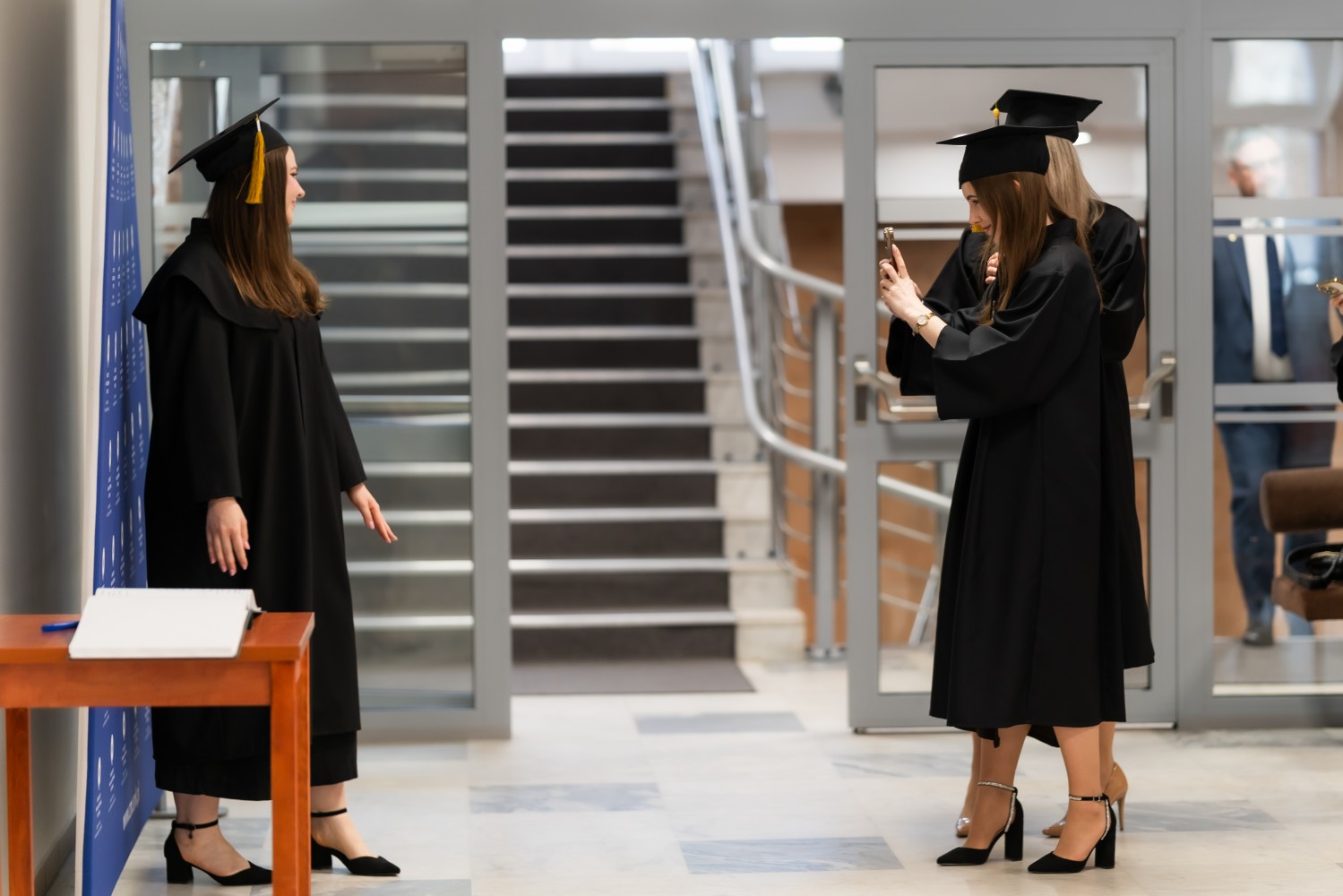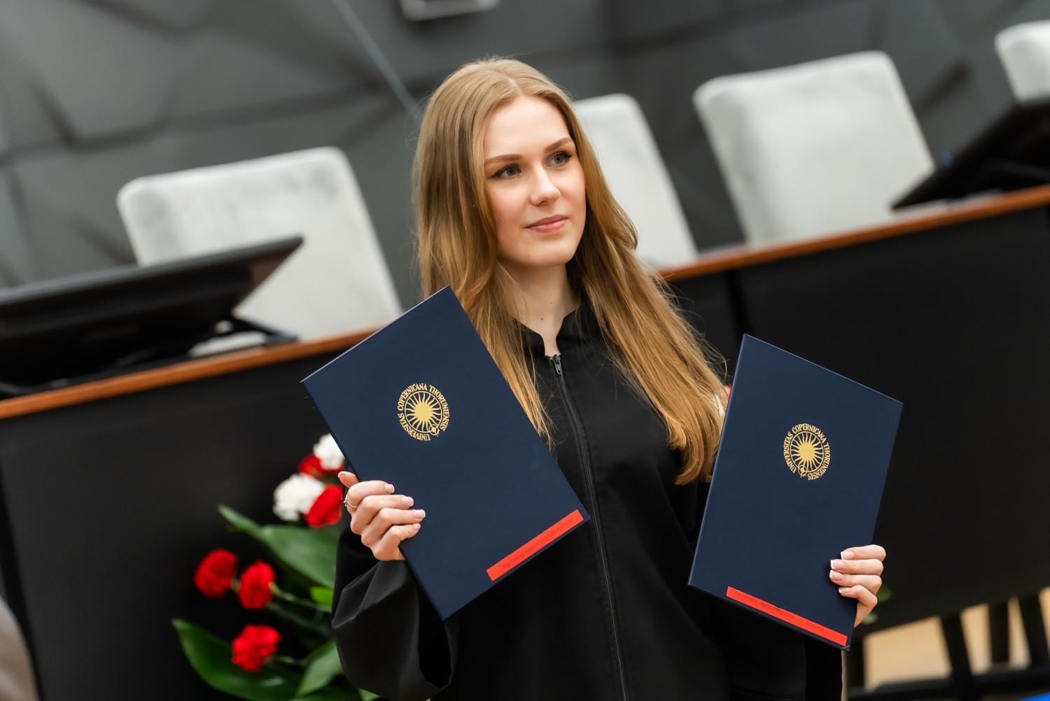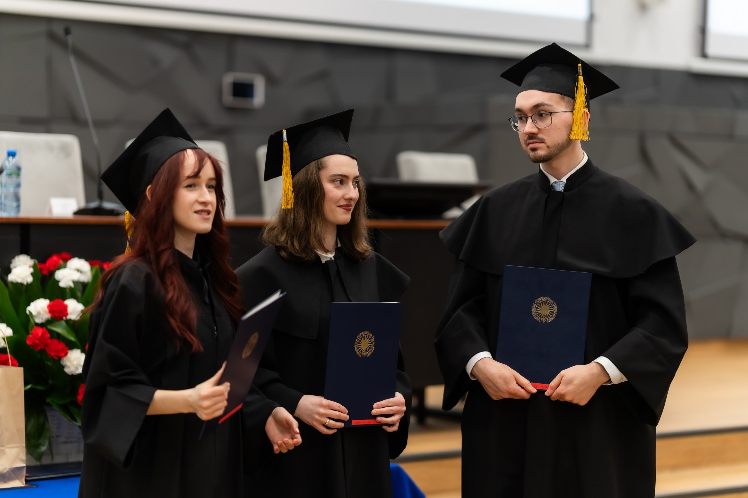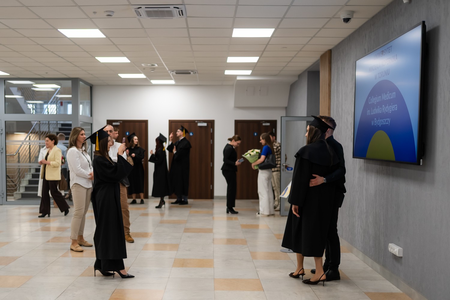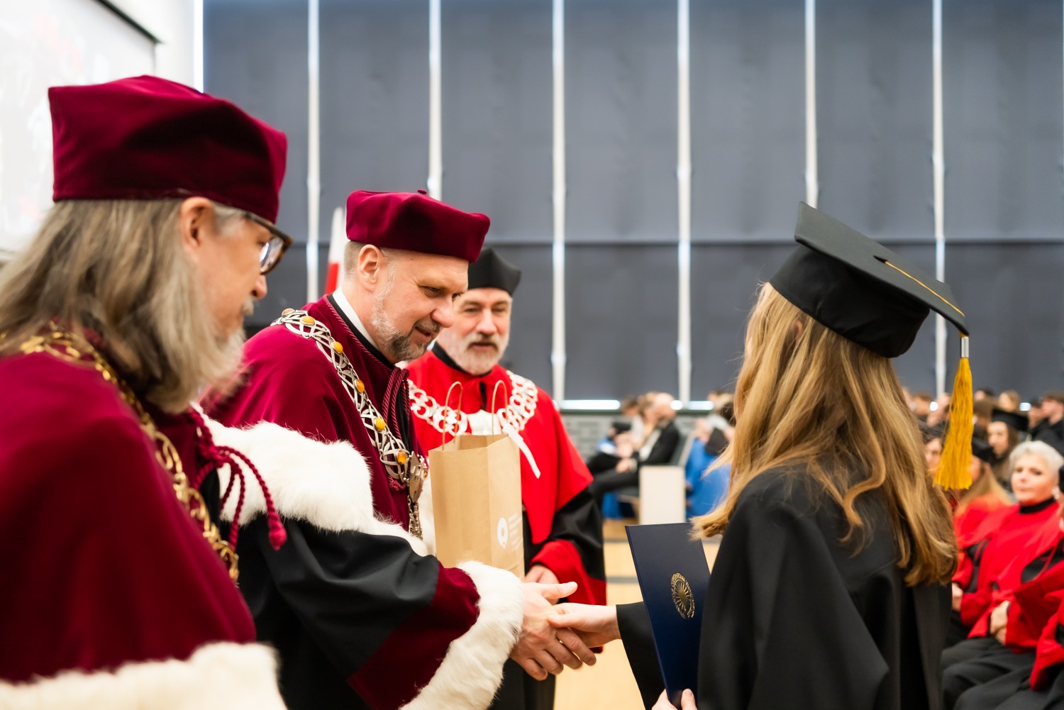 W uroczystości uczestniczyli również nauczyciele akademiccy reprezentujący Wydział Farmaceutyczny: prof. dr hab. Eugenia Gospodarek-Komkowska, prof. dr hab. Dorota Olszewska-Słonina, prof. dr hab. Stefan Kruszewski, dr hab. Katarzyna Buszko, prof. UMK, dr hab. Tomasz Dziaman, prof. UMK, dr hab. Lidia Gackowska, prof. UMK, dr hab. Daniel Gackowski, prof. UMK, dr hab. Marcin Koba, prof. UMK, dr hab. Piotr Kośliński, prof. UMK, dr hab. Rafał Różalski, prof. UMK, dr Wojciech Filipiak oraz dr Łukasz Pałkowski.