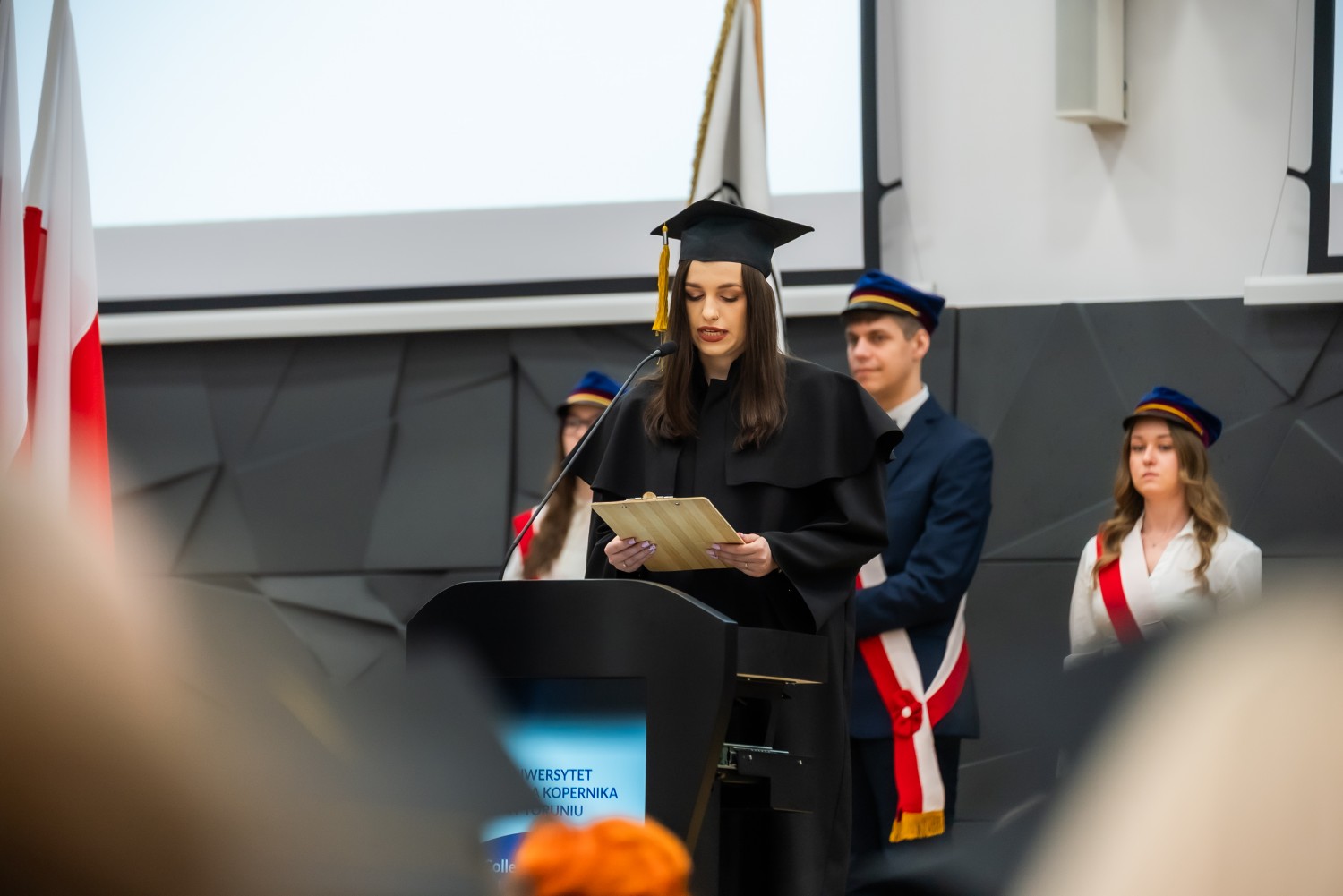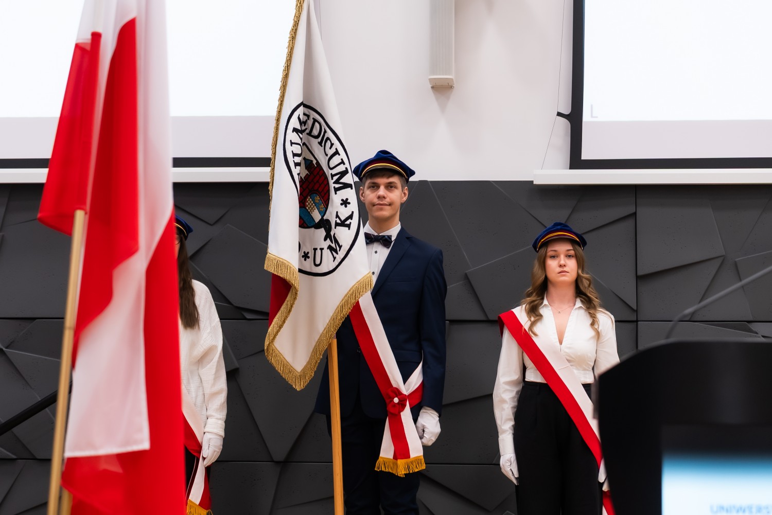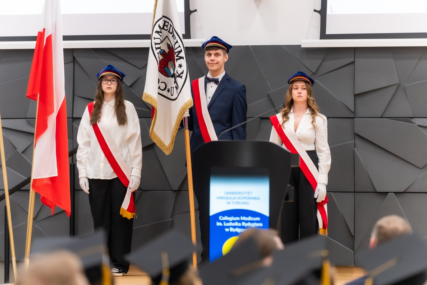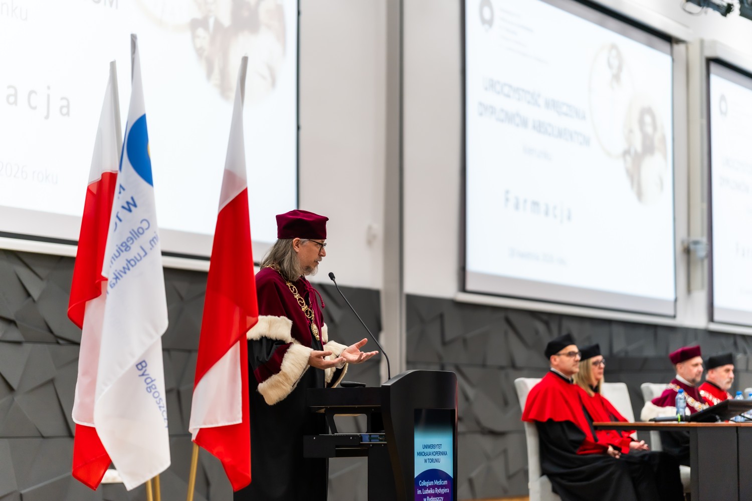 Uroczystość otworzył dr hab. Marek Foksiński, prof. UMK, Dziekan Wydziału Farmaceutycznego. W wydarzeniu uczestniczyli również prof. dr hab. Dariusz Grzanka, Prorektor ds. Collegium Medicum, oraz dr hab. Adam Kola, prof. UMK, Prorektor ds. Nauki i Pierwszy Zastępca JM Rektora. Obecni byli także przedstawiciele władz dziekańskich Wydziału Farmaceutycznego: dr hab. Renata Studzińska, prof. UMK, dr hab. Anna Stefańska, prof. UMK, dr hab. Artur Słomka, prof. UMK, oraz prof. dr hab. Michał Marszałł.